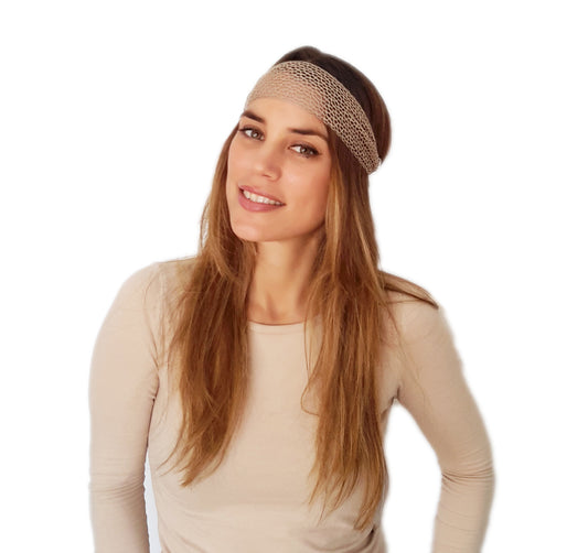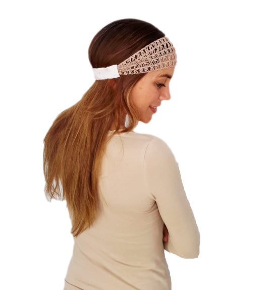 Cinta de Pelo Elástica Croché · Beis