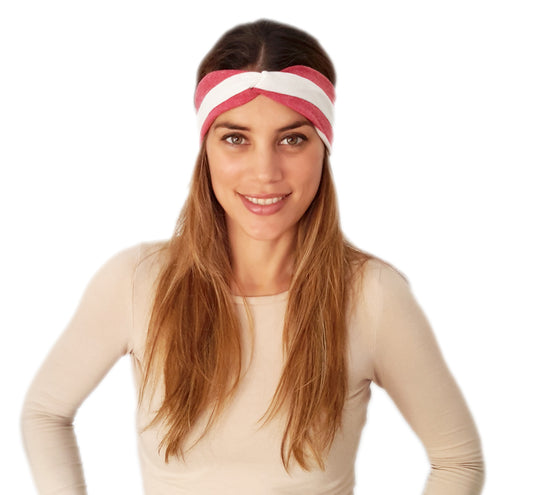 Cinta de Pelo Elástica con Nudo · Rayas Rojo Blanco