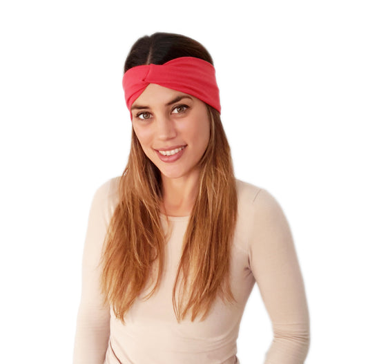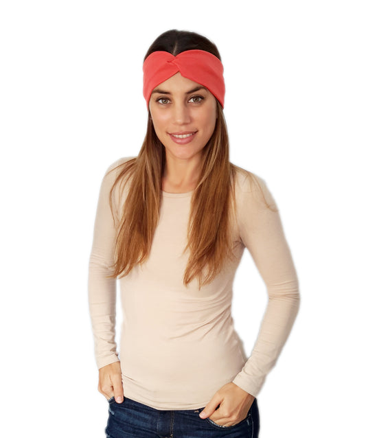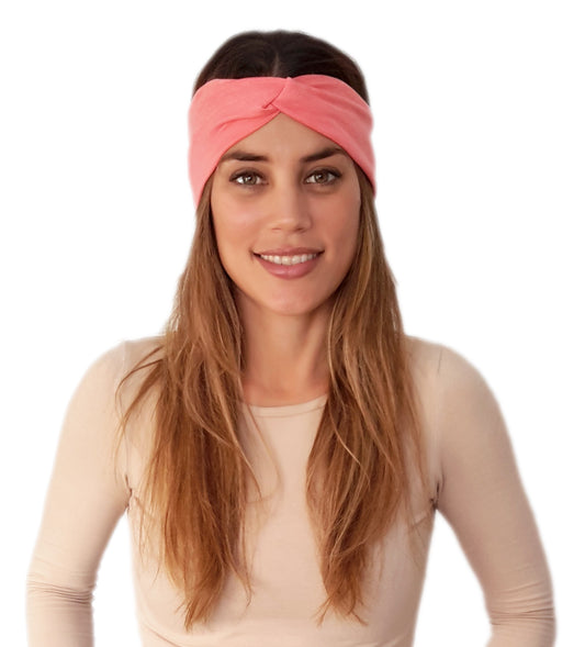 Cinta de Pelo Elástica con Nudo · Coral Brillo