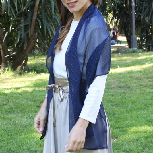 Chal Chiffon · Azul Marino con Lunares Blancos (50x150cm)