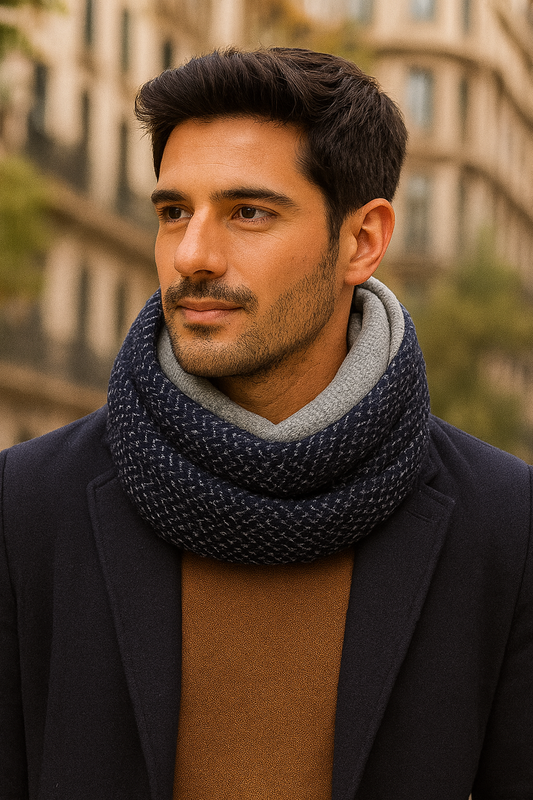 Bufanda Infinita Cuello Hombre · Tela doble Espiga Azul / Gris