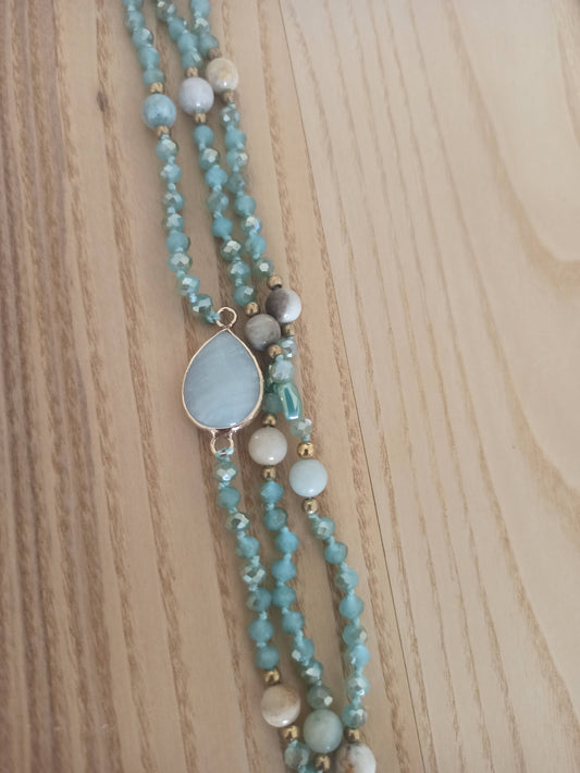 Collar Triple de Cuentas de Cristal y Piedras Semipreciosas – Exclusividad y Elegancia · Verde Agua