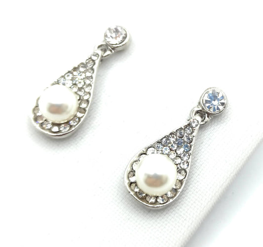 Pendientes Plateados · Cristales Brillo Perla, Plata