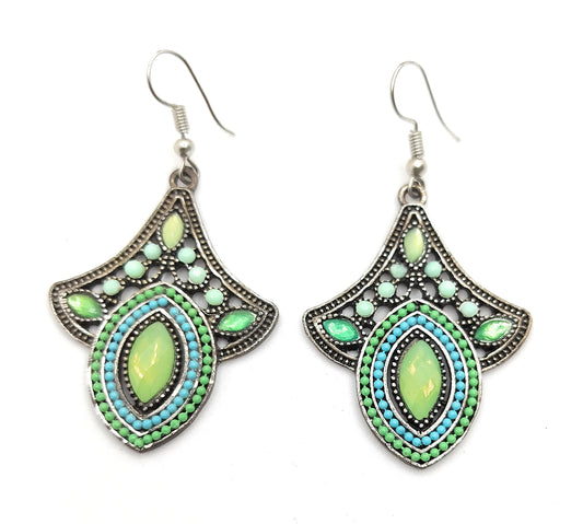 Pendientes Largos Triple Cristales Color · Verde Esmeralda