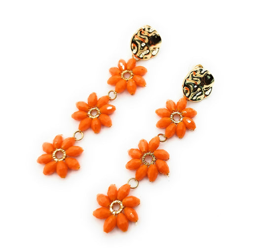 Pendientes Largos Triple Cristales Color · Flores Naranja