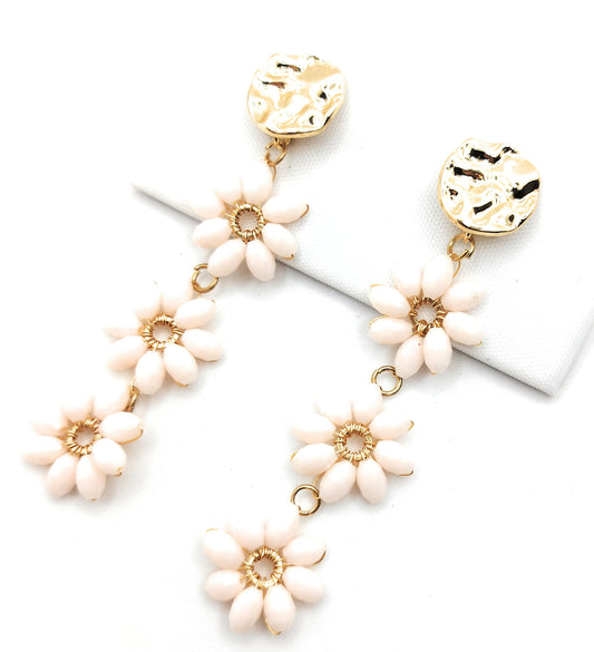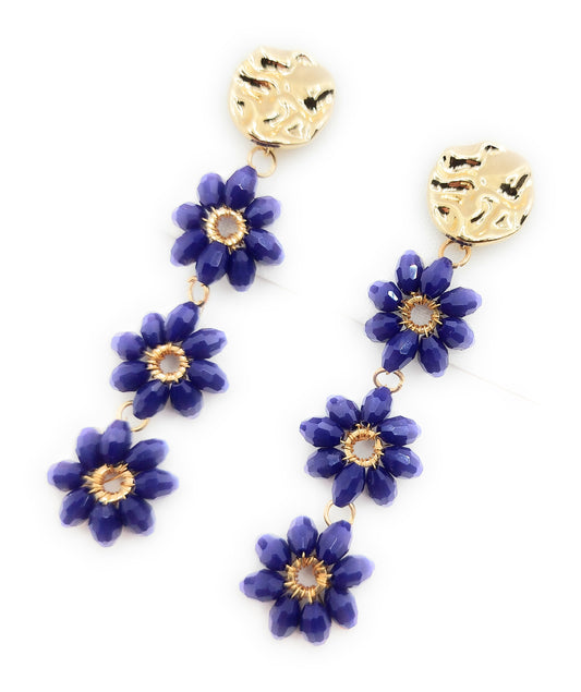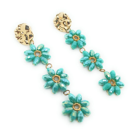 Pendientes Largos Triple Cristales Color · Flores Multicolor
