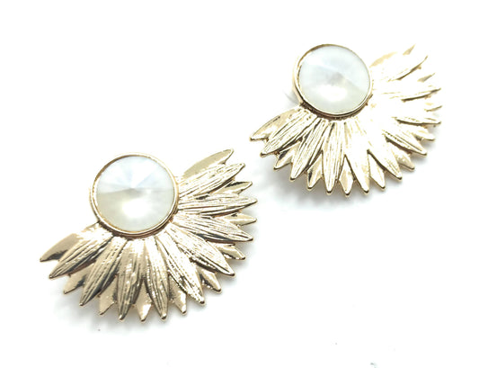Pendientes Dorados con Cristal · Oro Sol Blanco Redondo