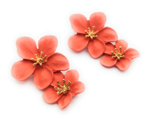 Pendientes Largos Doble Flor · Naranja