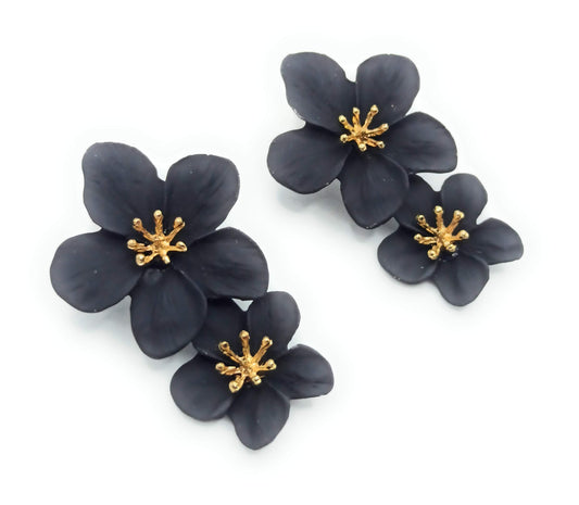 Pendientes Largos Doble Flor · Negro