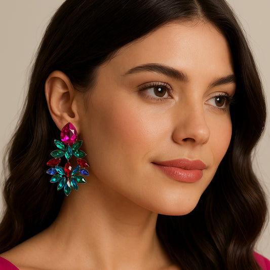Pendientes de Cristales facetados grandes y brillantes · Multicolor Fucsia Verde Esmeralda