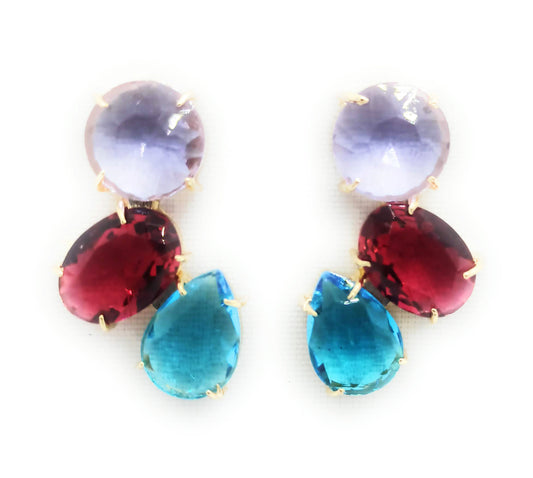 Pendientes Largos con Cristales de Colores · Lavanda Burdeos Celeste