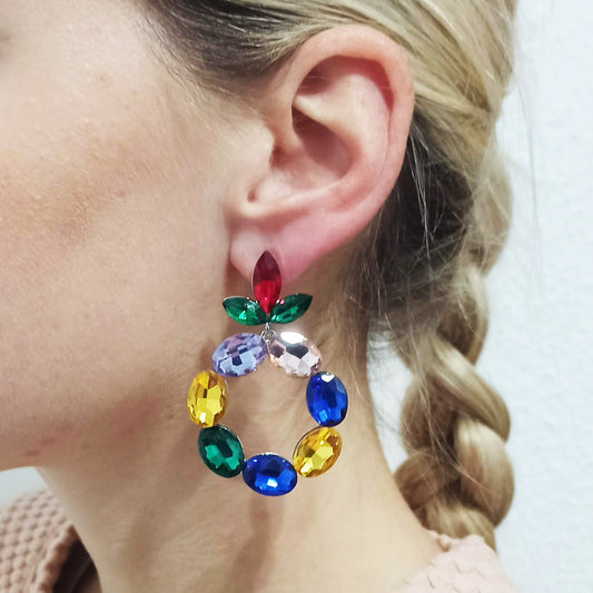 Pendientes Largos con Cristales de Colores · Verde Rosa Rojo