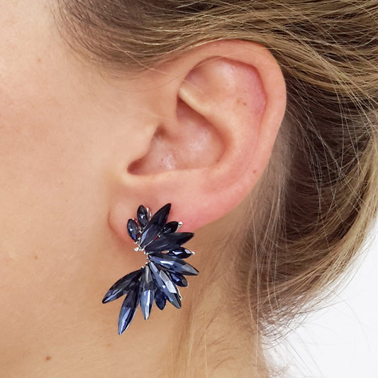 Pendientes Cristales Brillantes · Azul Noche, Plata