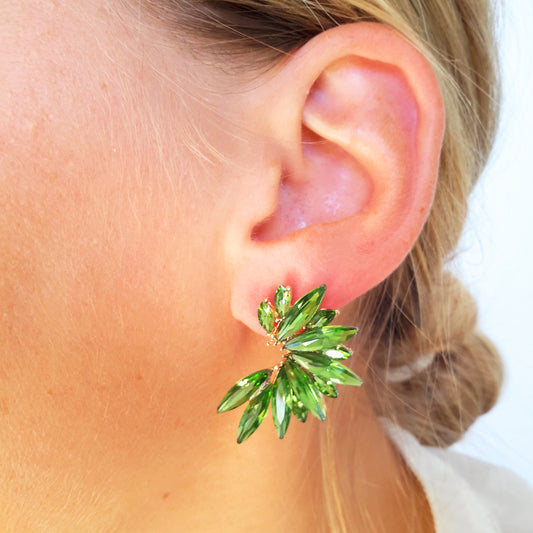 Pendientes Cristales Brillantes · Verde Bosque, Oro