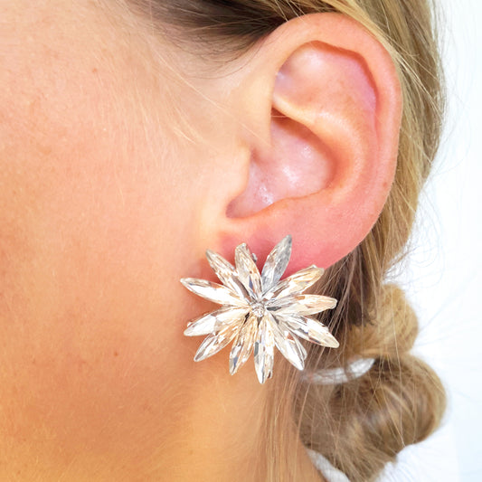 Pendientes Cristales Margarita · Blanco, Plata