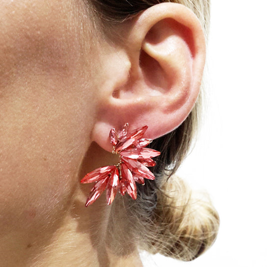 Pendientes Cristales Brillantes · Coral, Oro