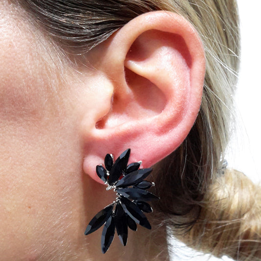 Pendientes Cristales Brillantes · Negro, Plata