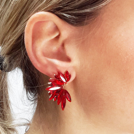 Pendientes Cristales Brillantes · Rojo, Oro