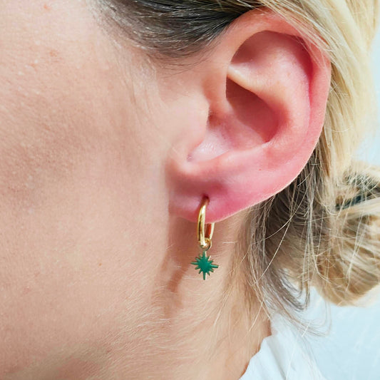 Pendientes con Colgantes · Aro Dorado Estrella Verde