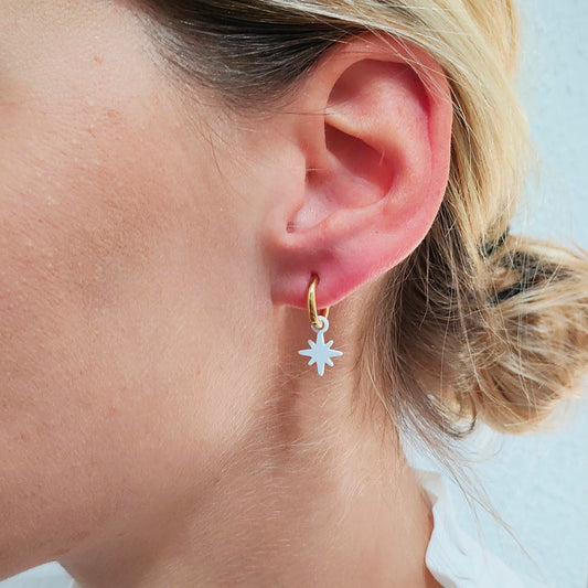 Pendientes con Colgantes · Aro Dorado Estrella Blanca