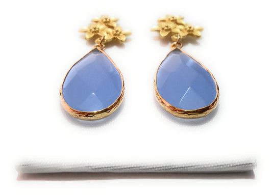Pendientes Piedra Semipreciosa · Flores Doradas Celeste
