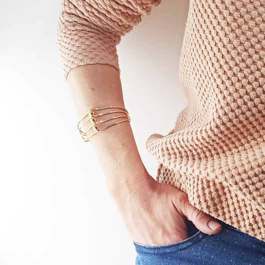Brazalete Dorado Ola · Elegancia Natural y Brillo Sutil