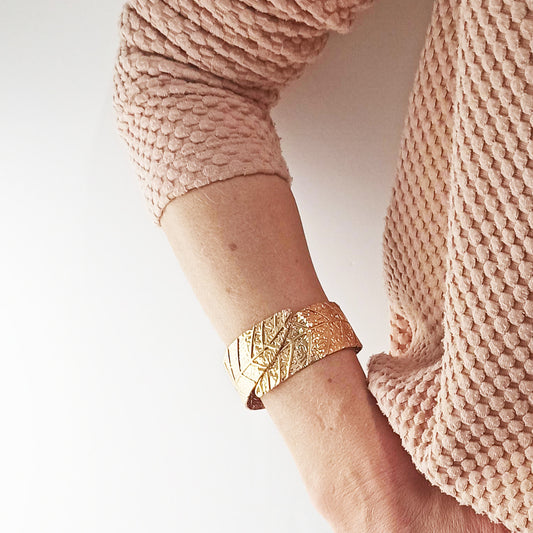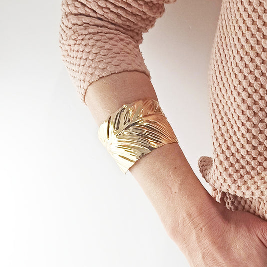 Brazalete Diseño Pluma · Oro Brillo Sútil