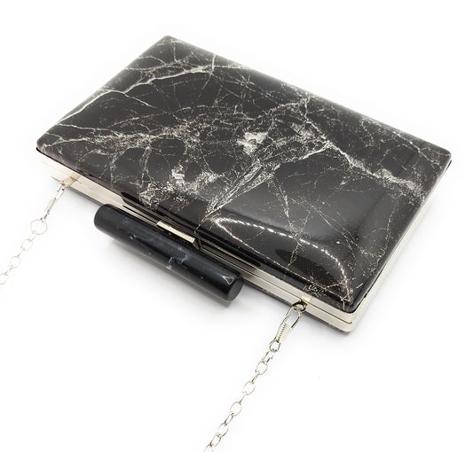 Cartera De Mano Bolso Fiesta · Mármol Negro Plata
