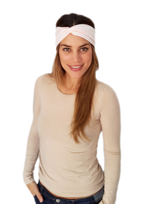 Cinta de Pelo Elástica con Nudo · Rayas Salmón Blanco