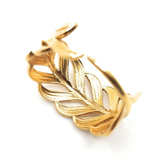 Brazalete Diseño Pluma · Oro Brillo Sútil