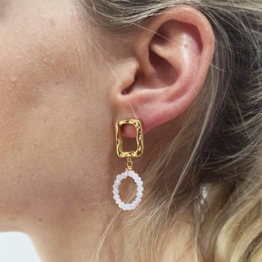 Pendientes de Aro con Colgante Blanco · Aro Dorado Piedra Semipreciosa Blanca