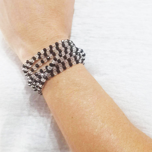 3 en 1: Collar Largo | Corto Doble | Pulsera · Negro Blanco