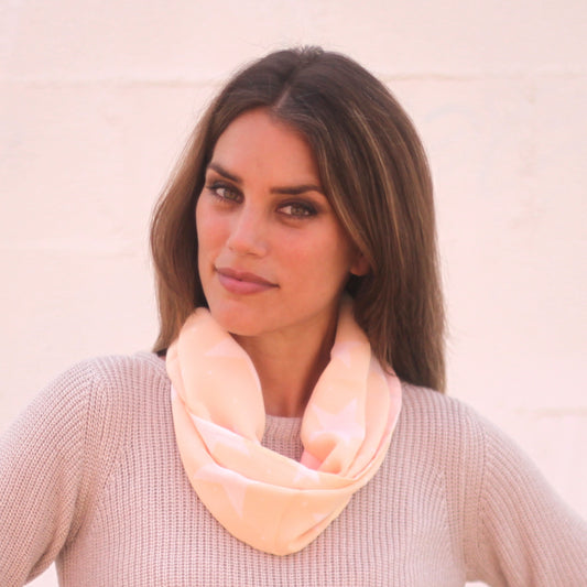 Fular Circular Reversible · Flores Denim / Rosa Claro