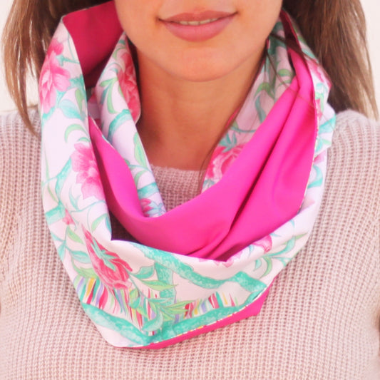 Fular Circular Reversible · Jardín de Rosas / Fucsia