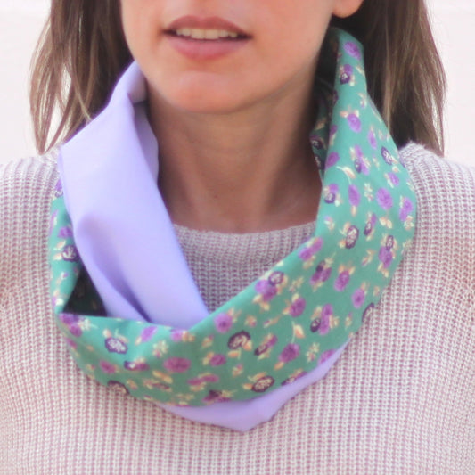 Fular Circular Reversible · Flores Denim / Verde Agua