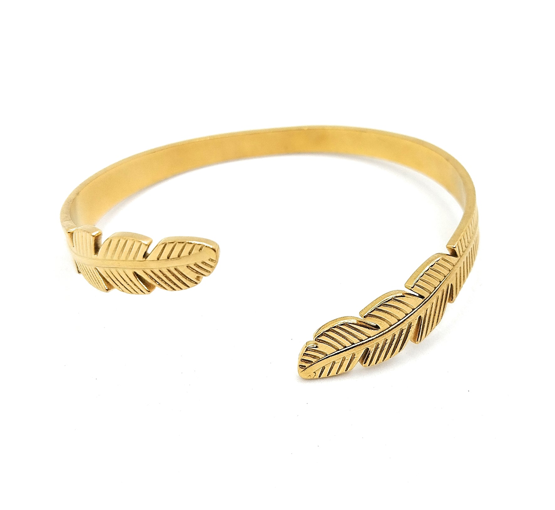 Brazalete Diseño Pluma · Oro Brillo Sútil