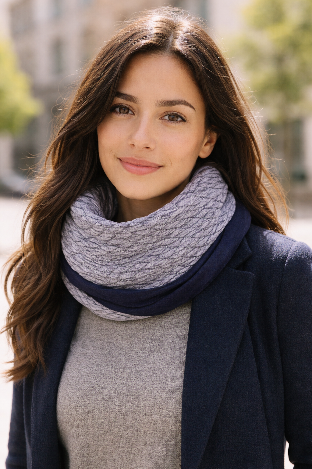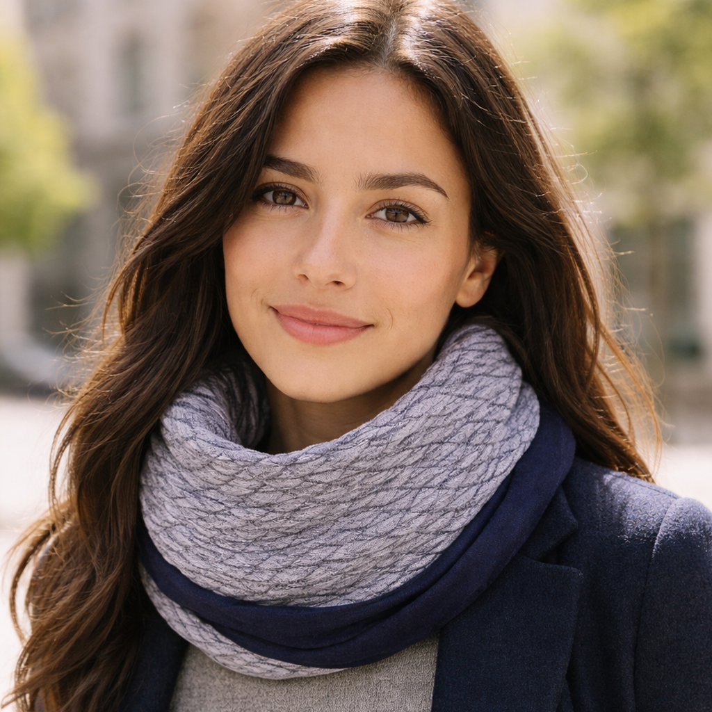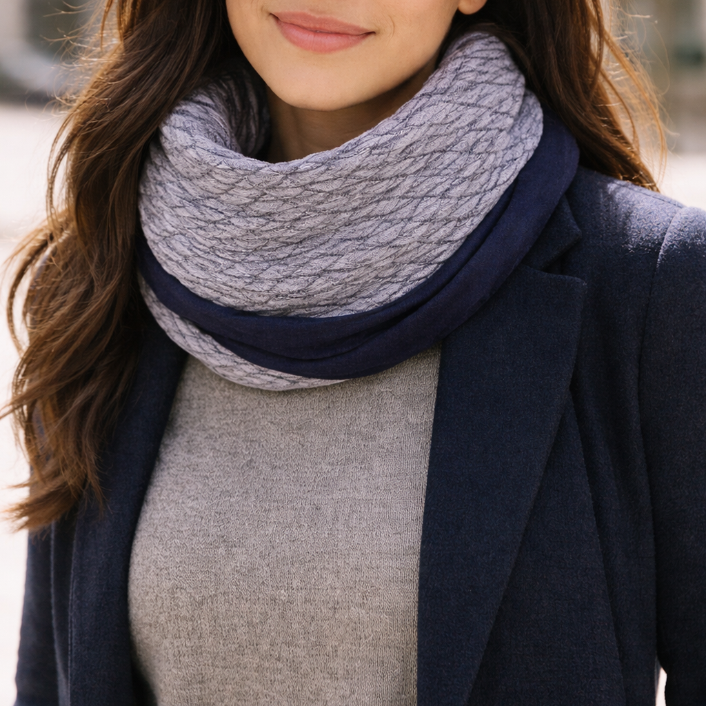 Bufanda Infinita Cuello Mujer Doble Tela Reversible · Rombos/Azul