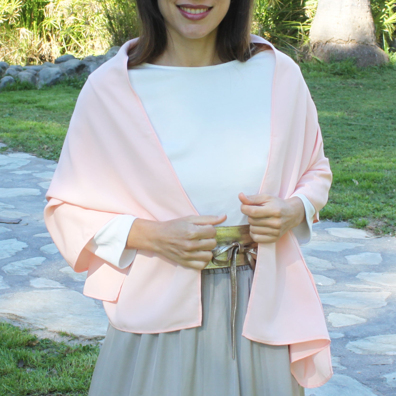 Con unas dimensiones de 50 x 150 cm, este chal ofrece la caída ideal para cubrir los hombros con estilo y aportar un toque distinguido a cualquier outfit de invitada perfecta.