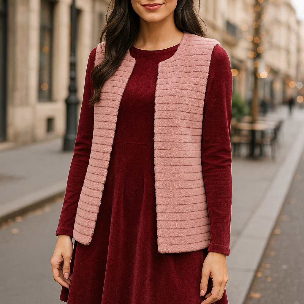 Chaleco de Pelo Sintético de Mujer – Elegante, Suave y de Tendencia · Pelo Sintético Rosa (talla única)