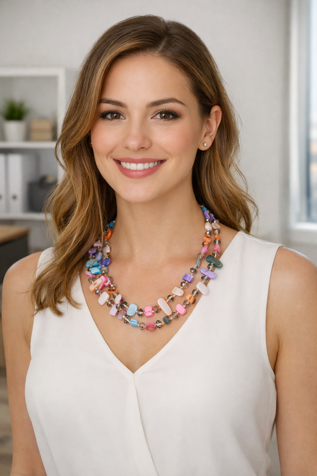 Collar Largo de Nácar Natural y Cristales Facetados · Colores Pasteles