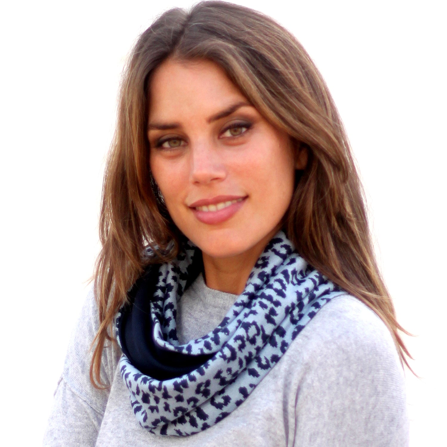 Bufanda tipo cuello para mujer, suave, cálida y sin lana, ideal para piel sensible. Diseño reversible con estampados modernos, hecha en España. Accesorio de invierno imprescindible y regalo perfecto para mujer.