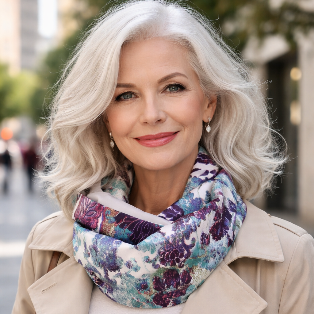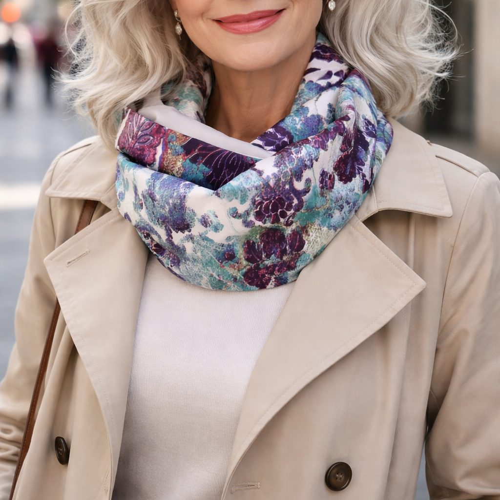 Fular Infinito Reversible · Raso Multicolor / Gris Claro (última unidad!)