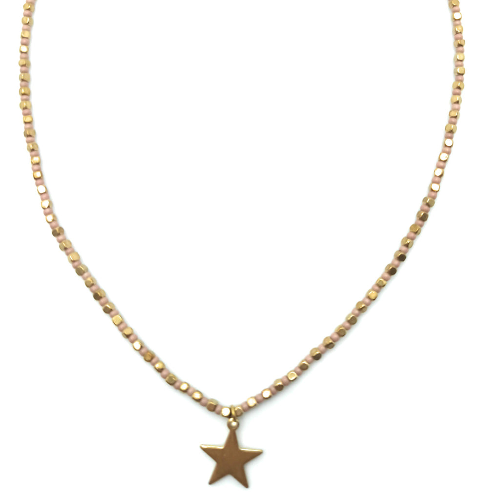 Gargantilla de mujer con Cuentas de Colores con Colgante Estrella Dorado