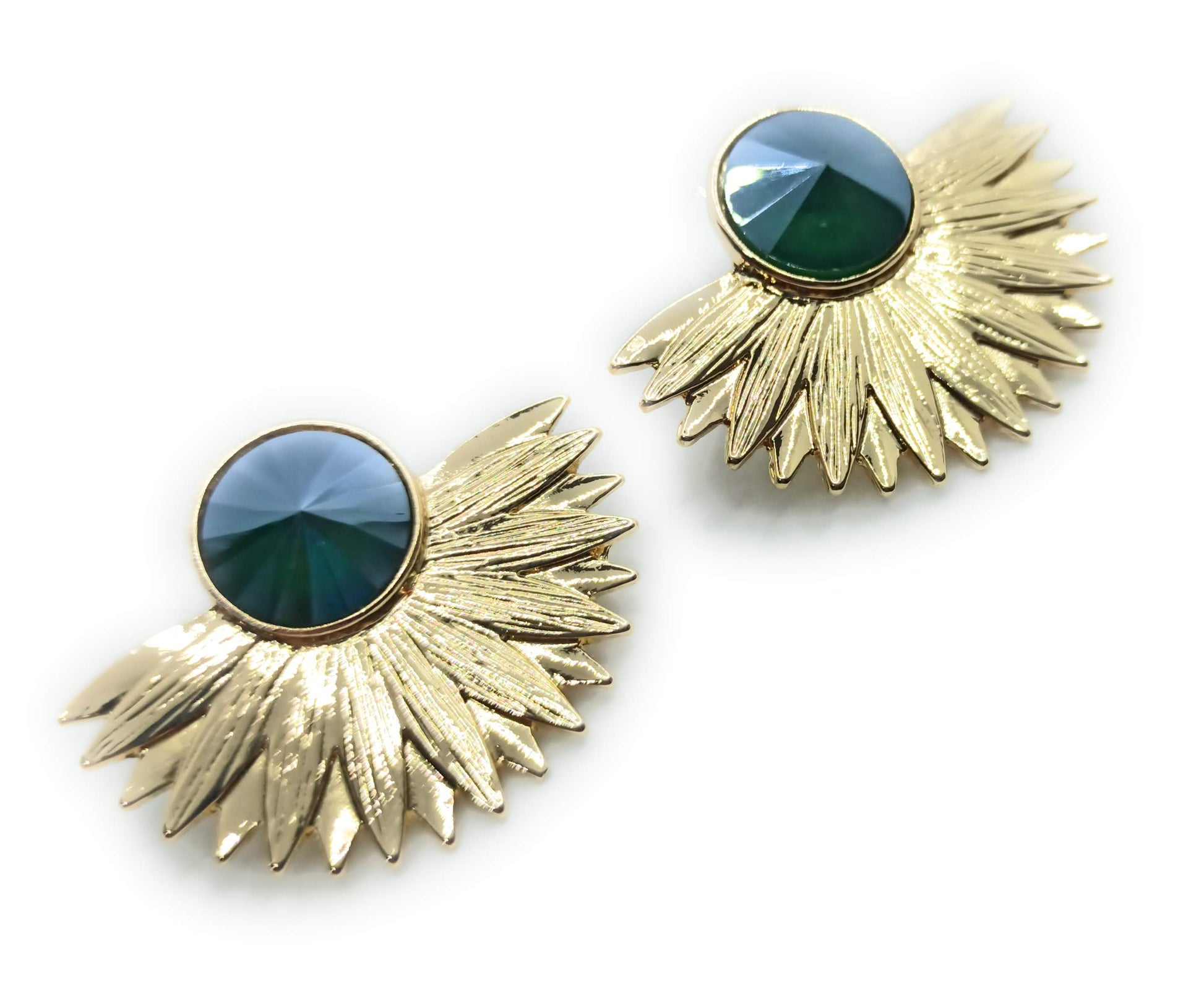 Pendientes Dorados con Cristal · Oro Sol Verde