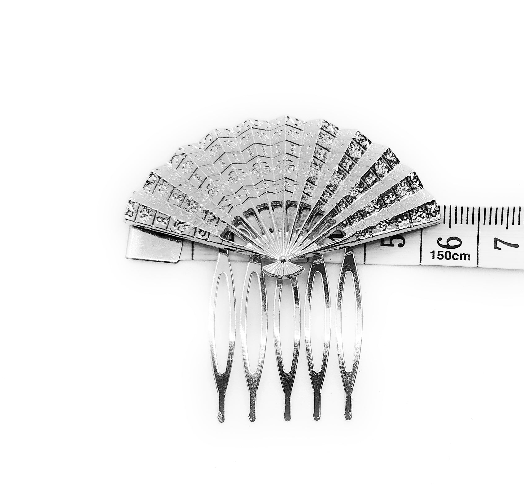 Peineta Flamenca Plateado · Abanico Plata Brillo (Talla M)