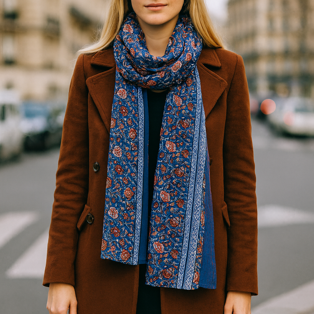 Cada bufanda está elaborada cuidadosamente a nivel local en Sevilla, España, en una producción limitada y exclusiva. Esto garantiza que cada pieza tenga acabados de alta calidad, un diseño único y un toque artesanal que no encontrarás en producciones masivas. Al elegir esta bufanda, no solo llevas un accesorio de moda elegante y cómodo, sino que también apoyas la producción local y sostenible, con atención al detalle y cariño en cada paso del proceso.