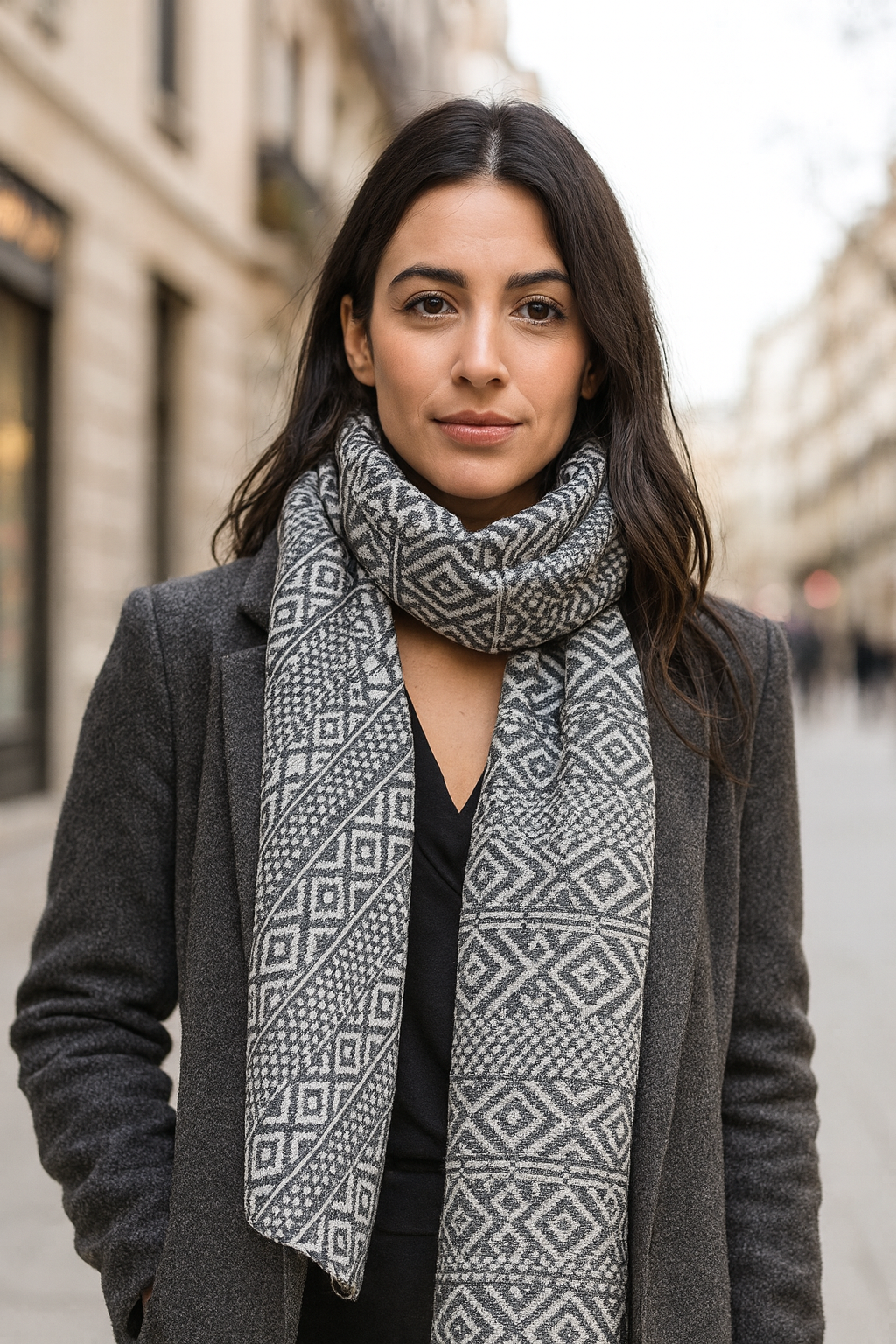 Bufanda Grande Rectangular · IKAT Blanco Negro (última unidad!)