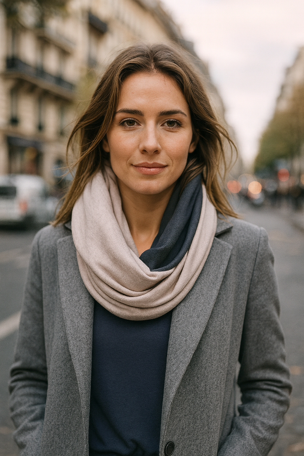 Bufanda Infinita Cuello Mujer Reversible · Rosa/Gris