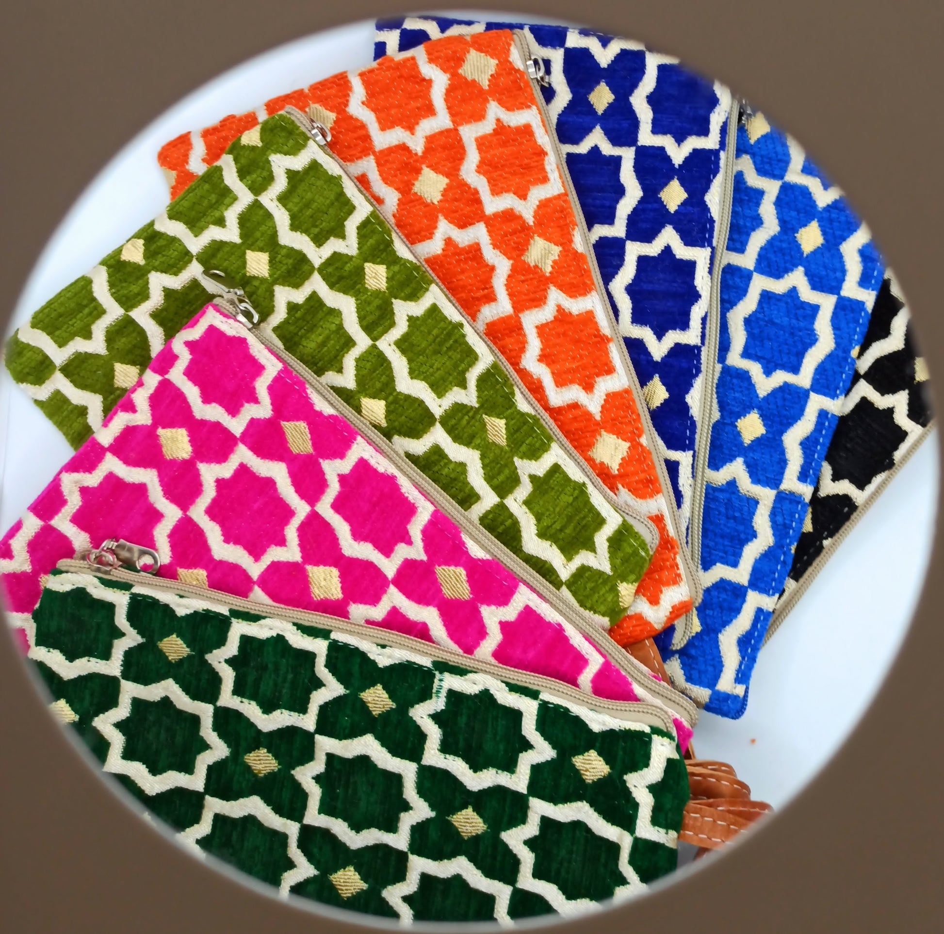 “Cartera de mano con estampado andaluz, colorida y alegre. Cierre con cremallera y asa cómoda, perfecta para llevar a mano o dentro de tu bolso grande. Un complemento versátil que añade estilo a cualquier look, informal o festivo.”