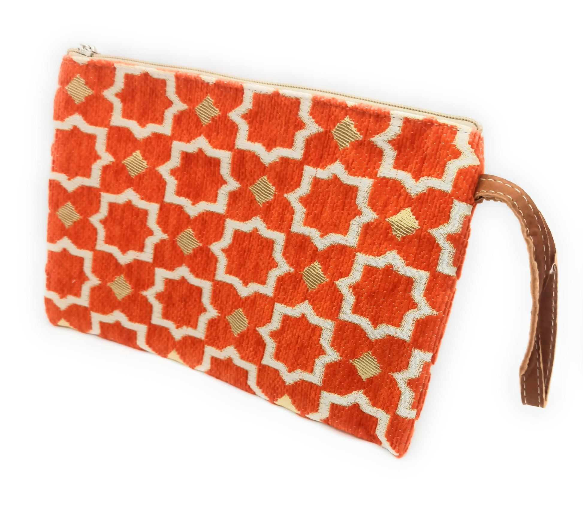 Cartera de Mano Neceser Estampado Andaluz – Colorido y Alegre · Naranja